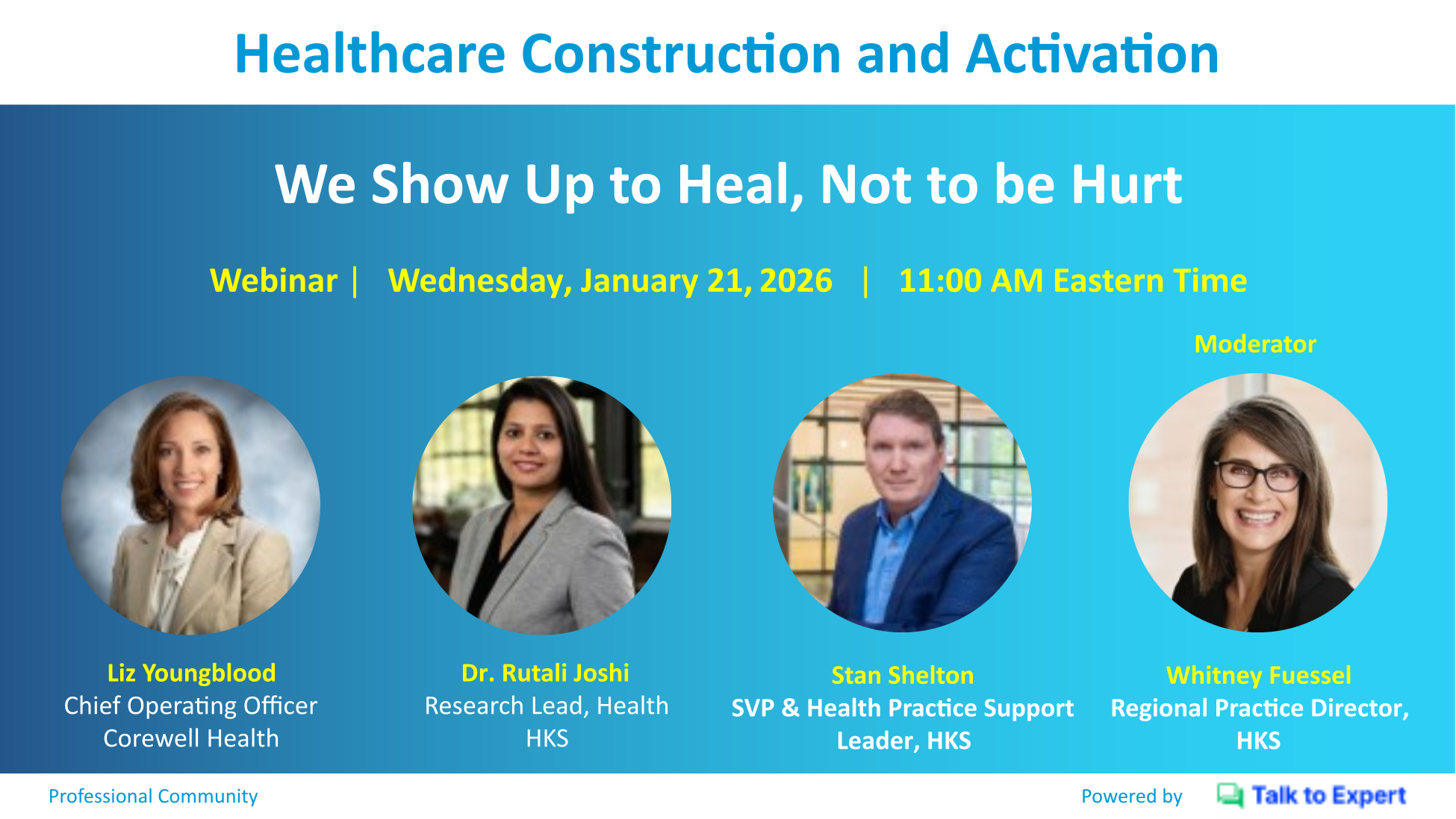 Healthcare executives, planners, architects, construction managers, and anyone driving complex healthcare infrastructure initiatives are invited to join the community and participate in our events.